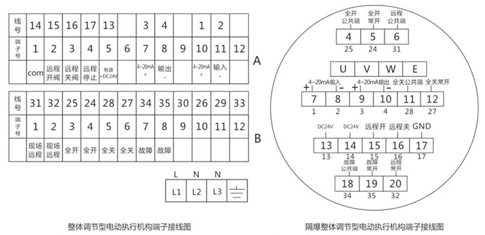 整體型多回轉(zhuǎn)電動執(zhí)行器 接線圖